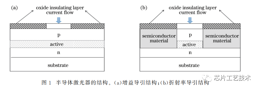寬條形結構是大功率激光器常用設計,如圖b是常見的折射率導引結構的芯片結構。利用材料折射率差導引的結構不僅對注入電流和載流子的側向擴散有限制作用,還能夠限制光場的側向滲透.所以折射率導引機制能夠有效降低器件的閾值電流,同時有源區(qū)產(chǎn)生的熱量能夠向周圍的無源區(qū)散失,保持器件的熱穩(wěn)定性。